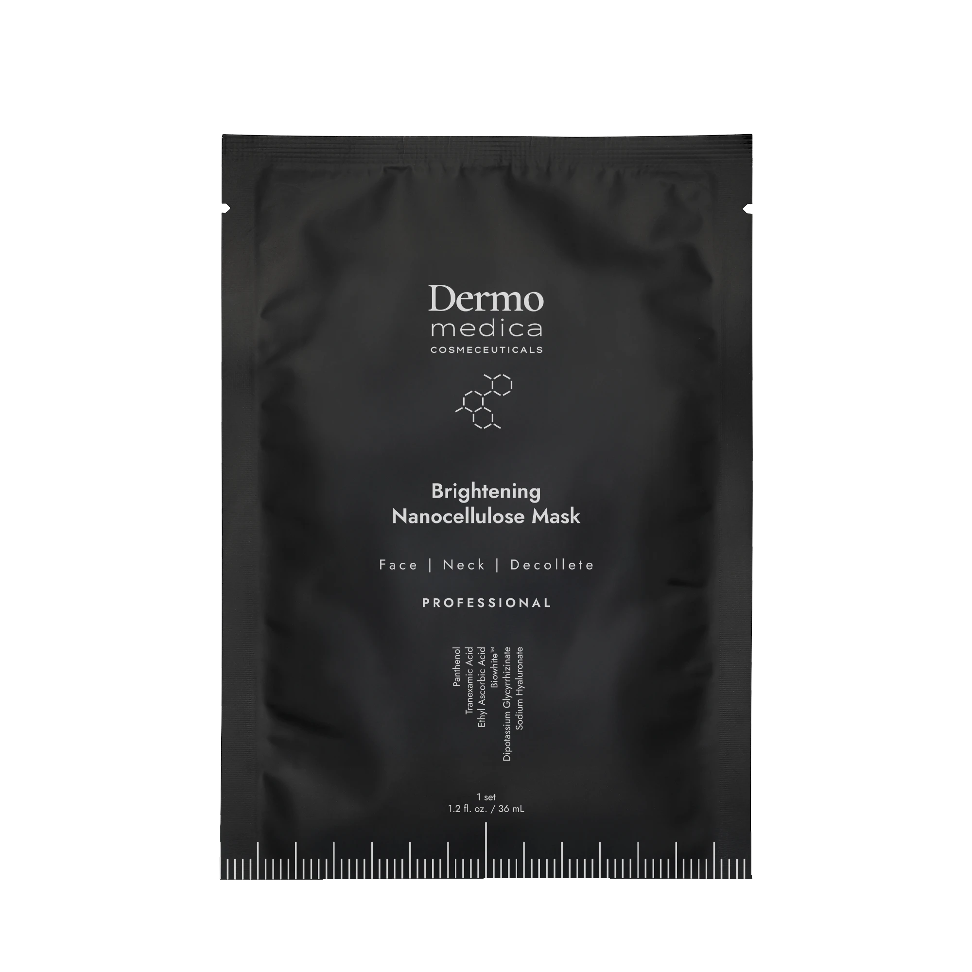 Dermomedica Brightening Nanocellulose Mask to profesjonalna maska rozjaśniająca w płacie wykonanym z innowacyjnej nanocelulozy, która doskonale dopasowuje się do skóry i zwiększa przenikanie składników aktywnych. Produkt przeznaczony jest do skóry z nierównym kolorytem, przebarwieniami oraz skłonnej do rumienia. Maska działa intensywnie rozjaśniająco, nawilżająco i kojąco, jednocześnie wspierając regenerację skóry, szczególnie po zabiegach kosmetologicznych. Dzięki zaawansowanej strukturze nanocelulozy włókna są bardzo cienkie, co zwiększa skuteczność uwalniania substancji aktywnych i poprawia efekty pielęgnacyjne.