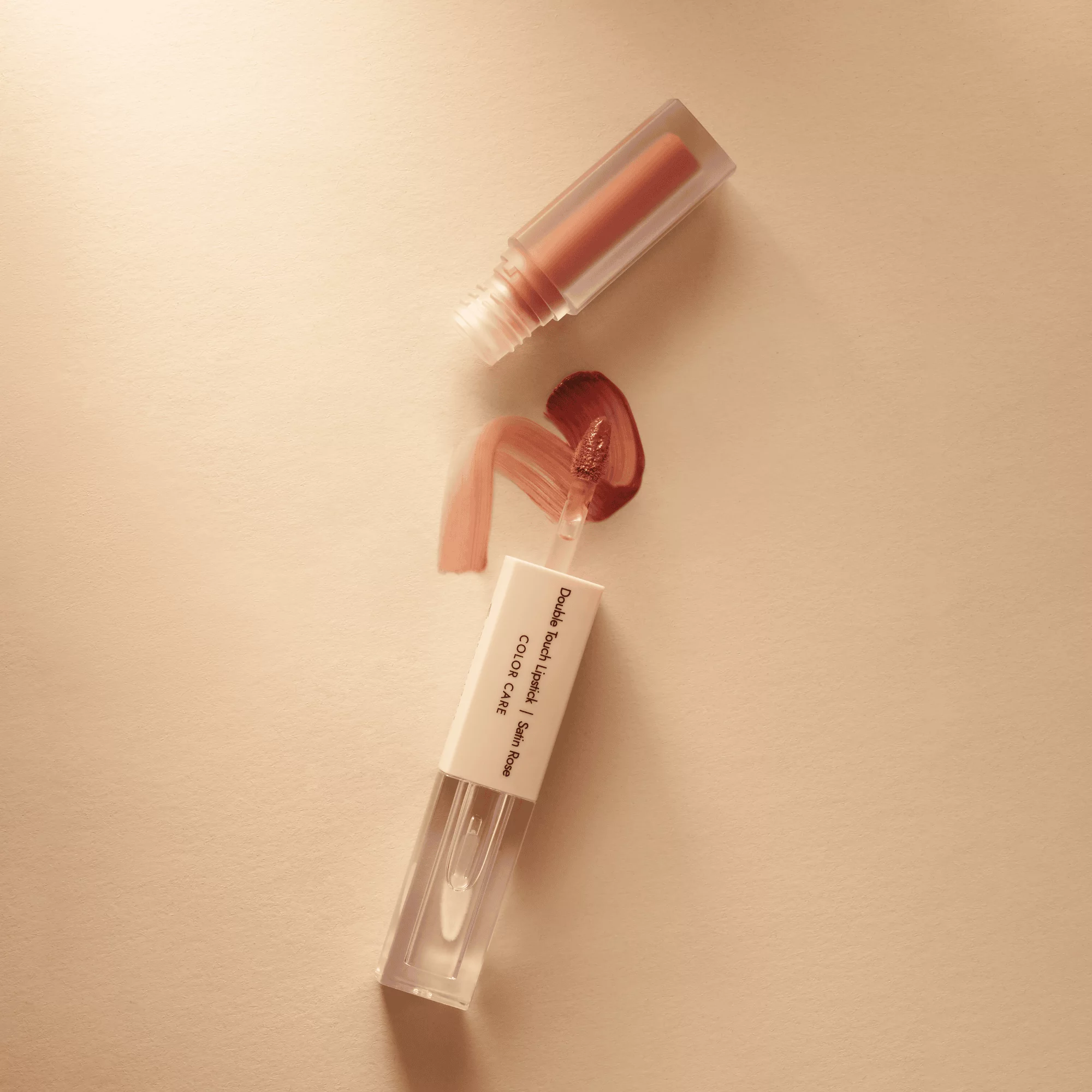 Double Touch Lipstick to innowacyjna, dwuczęściowa pomadka, która łączy w sobie intensywny, pełen pigmentu kolor z długotrwałym efektem tafli. Pierwszy etap to aksamitna, lekka warstwa koloru o wysokim stopniu krycia, która perfekcyjnie przylega do ust i nie migruje (jest matowa). Drugi – to lustrzany top-coat, który zabezpiecza makijaż, nadaje ustom spektakularny połysk i wzmacnia komfort noszenia.