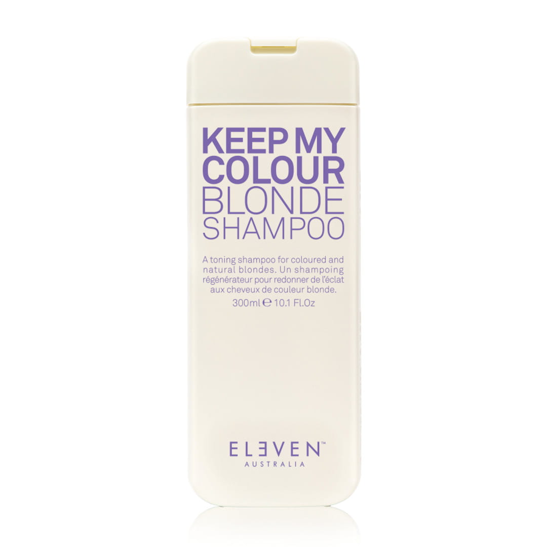 ELEVEN Australia Keep My Colour Blonde Shampoo to profesjonalny szampon przeznaczony do pielęgnacji włosów blond, rozjaśnianych i siwych. Formuła wzbogacona o fioletowe pigmenty skutecznie neutralizuje niepożądane żółte tony, przywracając chłodny odcień i świeżość koloru. Szampon delikatnie oczyszcza włosy i skórę głowy, jednocześnie pielęgnując i nawilżając pasma. Produkt pomaga utrzymać intensywność koloru, nadaje włosom miękkość, blask oraz zdrowy wygląd. Najważniejsze zalety: neutralizacja żółtych tonów, podkreślenie chłodnych odcieni blond, delikatne oczyszczanie, nawilżenie i wygładzenie, ochrona koloru