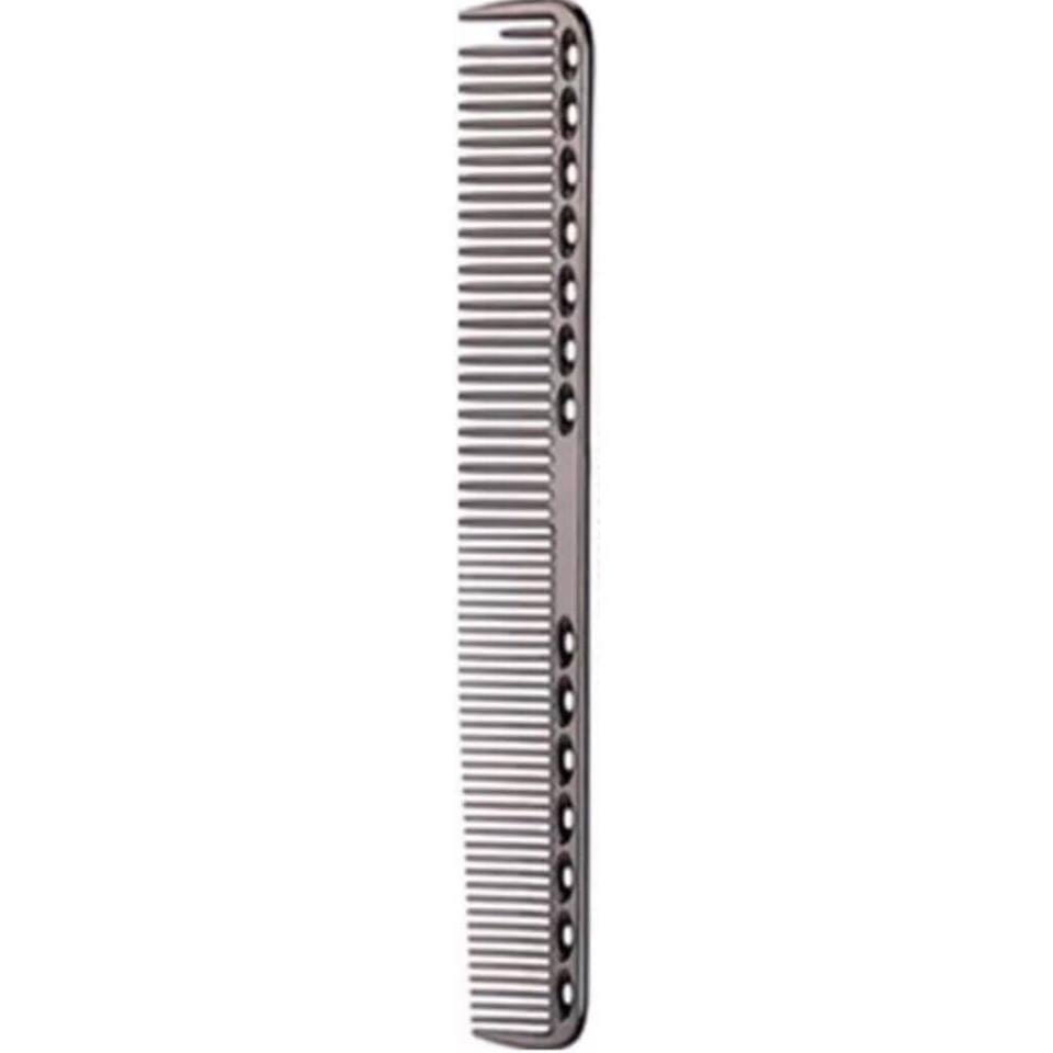 Profesjonalny, średniej wielkości grzebień wykonany z wysokiej jakości metalu w eleganckim, grafitowym kolorze. Dzięki optymalnym wymiarom jest niezwykle poręczny i idealnie sprawdza się przy precyzyjnych pracach wykończeniowych, cieniowaniu oraz układaniu krótszych i średnich pasm włosów. Metalowa konstrukcja gwarantuje dożywotnią trwałość i pełną odporność na wysokie temperatury.