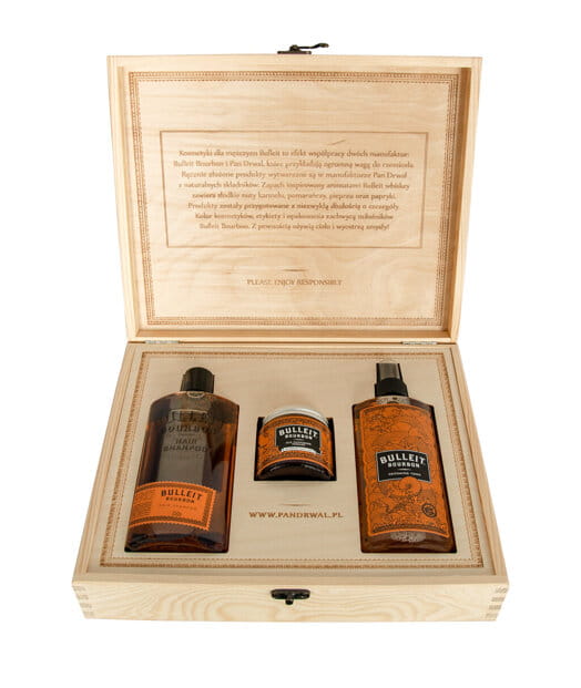 Zestaw kosmetyków Pan Drwal x Bulleit Bourbon, inspirowanych aromatyczną whiskey prosto z Kentucky! Produkty tworzące zestaw skupiają się wokół pielęgnacji i stylizacji męskich włosów. Szampon do włosów Pan Drwal to łagodne oczyszczanie włosów i przygotowanie ich na przygotowanie produktów stylizujących. Grooming Tonic Bulleit to nowość w repertuarze marki - tonik może pełnić funkcję pre-stylera lub samodzielnego stylizatora w wypadku luźniejszych fryzur. Pomada do włosów to kropka nad "i" - utrwala fryzurę, nadaje jej charakter. Old Fashioned to wodna pomada o eleganckim, ponadczasowym wykończeniu z lekkim połyskiem. Naturalne składy i unikatowy zapach bazujący na aromacie pomarańczy, zbalansowanego akordami karmelu, pieprzu i słodkiej papryki są znakami rozpoznawczymi produktów Bulleit. Całość zapakowana w skrzynkę z grawerem - doskonały pomysł na prezent dla każdego faceta.